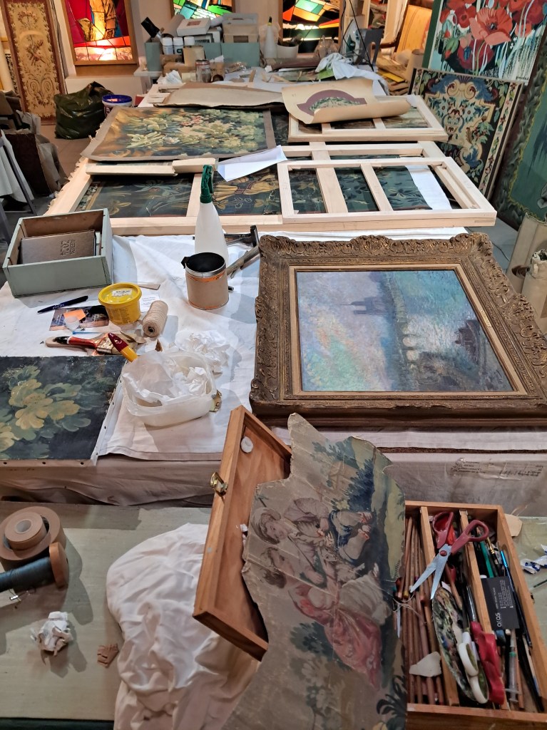 La restauration s’effectue dans notre atelier-boutique, à Aubusson.
